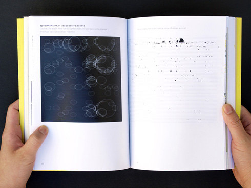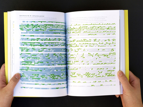 Developing neurographic specimens: one set of events Upon receiving the first periods of data, I set about trying to determine what the design problem was. What were my elements? Being unfamiliar with code, the way I started to familiarize myself with the process was to code literally by hand. Setting up the file in Illustrator, I then marked out distance, time, and events. Working by hand was ultimately a very slow process and unproductive as a result in some aspects. On the other hand, the primary gain in working in this manner was to have freedom to experiment without being constrained by coding language. In addition, the process taught me natural or existing attributes of the data, such as difference between values, or total lines of numbers, etc. One of the essential lessons I learned in this process was how simple marks ultimately gave greater flexibility in how they could visually operate as a form and in behavior. 20 specimens: variations on a theme Computer processing provides an immediate result which allows for generating variations relatively easily. One benefit to rapid generation is that one can assess a certain command or quality of visual expression by the body of work that is generated. One can start to assess that certain qualities are good in one form of visualization over another. (click on image to download more specimens!) The welch grid also used processing as the programming platform but functioned and is utilized in a totally different manner. |